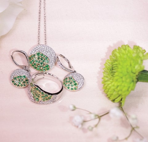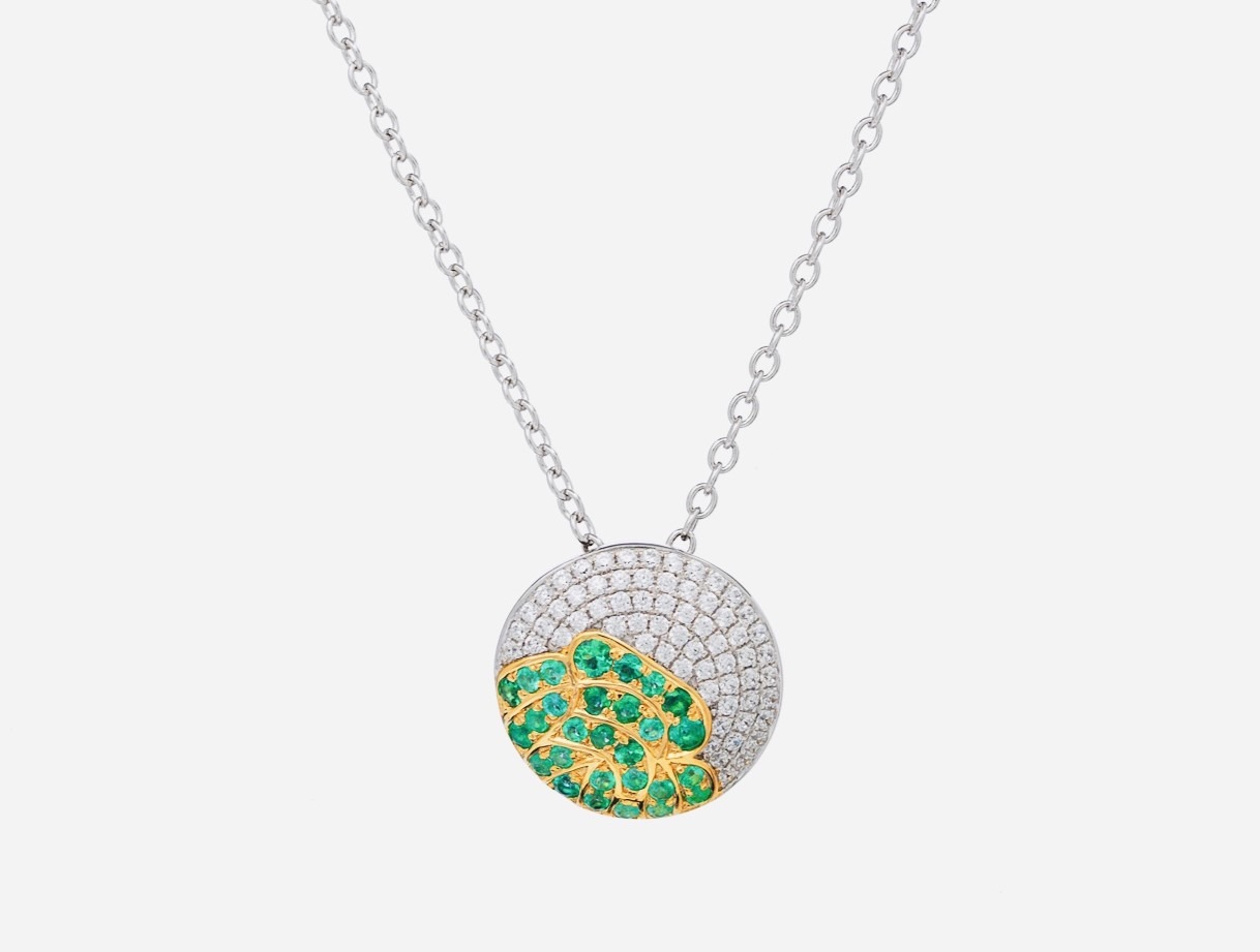 18kt Diamond approx. 0.49pt, Emerald approx. 0.41pt Circle Pendant w/chain quantity